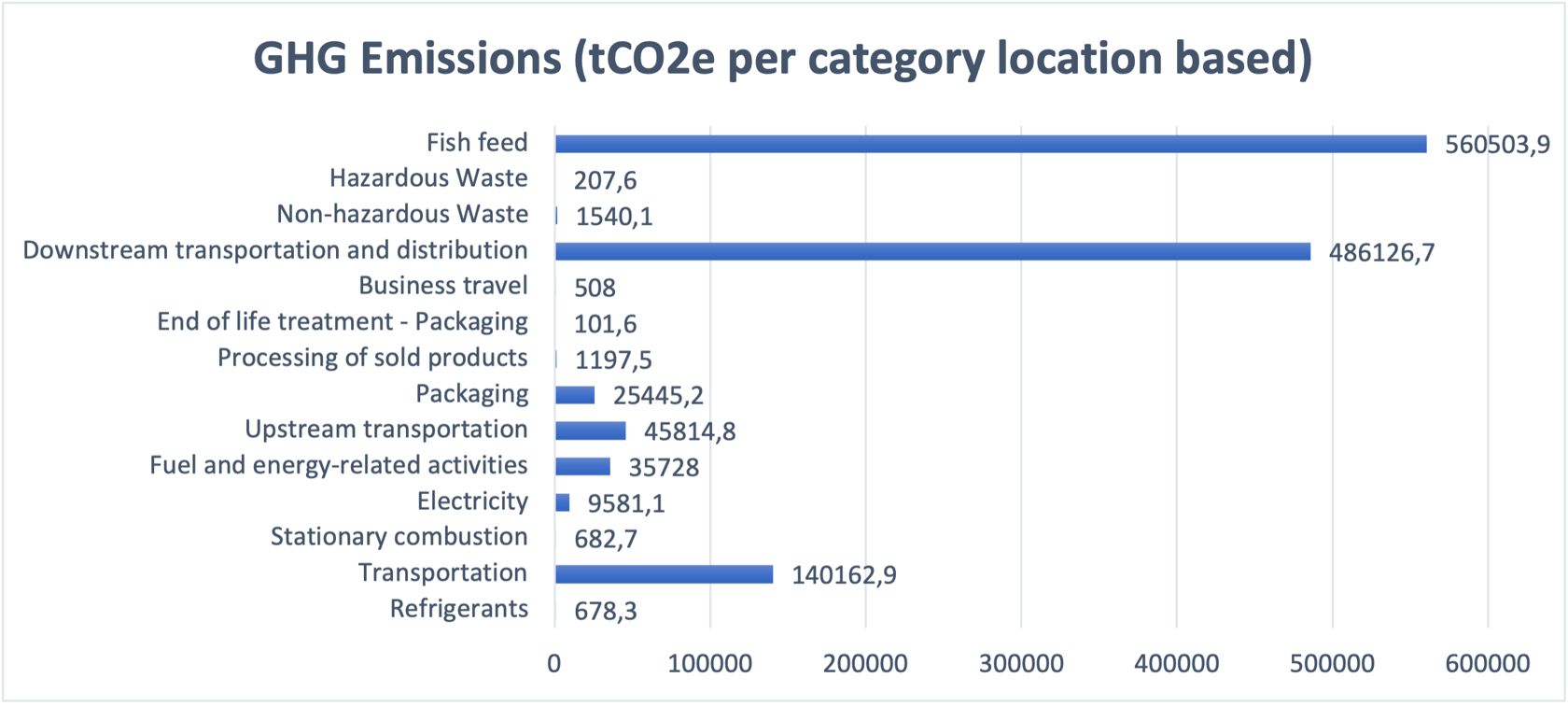 Lufttransport til utenlandske markeder er en betydelig bidragsyter til konsernets totale klimafotavtrykk, og konsernet tar tak i dette. Likevel er det i fôr, som står for ca. 80 % av konsernets totale CO2- ekvivalenter, konsernet har størst potensial for reduksjon i CO2 utslipp.