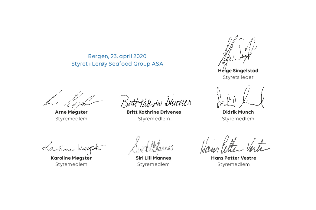 2020 representerer et tydelig skifte i mange markeder, der generelle krav til bærekraft er blitt enda viktigere for konsumentens valg. Dette er en utvikling av trender konsernet har posisjonert seg for over lang tid. Lerøy sin vertikalt integrerte verdikjede gir en unik mulighet til å synliggjøre bærekraft som et konkurransefortrinn. Økt fokus på bærekraft, i kombinasjon med konsernets evighetsperspektiv, styrker Lerøy sin holdning til at det har vært riktig å ha et fokus på miljø og klima.