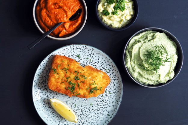Hånd i hånd med panert fisk er kongen av tilbehør: dipp. Her får du tre varianter som har både smak og næring, og som sitter som et skudd til crunchy nuggets.