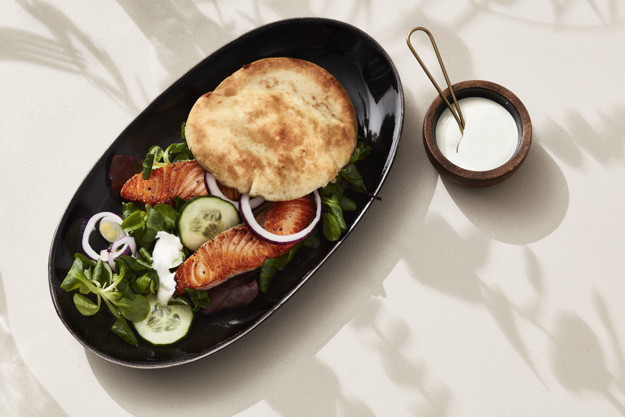 1. Pitabrød har sin opprinnelse i Midtøsten og kan spises på utallige måter! Prøv å fylle den med enkle og rene råvarer som agurk, salat, rømme og stekt laks.