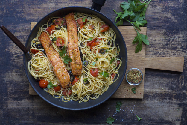 3. Denne friske pastaretten er laget i samarbeid med matblogger Aicha Bouhlou, og er laget med et fantastisk krydder, Mær Seaweed Spice Mediterrean, som gir den en unik smak som gjør at du savner hverken ost eller saus. Produktet kan så langt kun kjøpes på Meny, men du må gjerne lage retten med vanlig havsalt og en skvis sitron for en alternativ versjon.