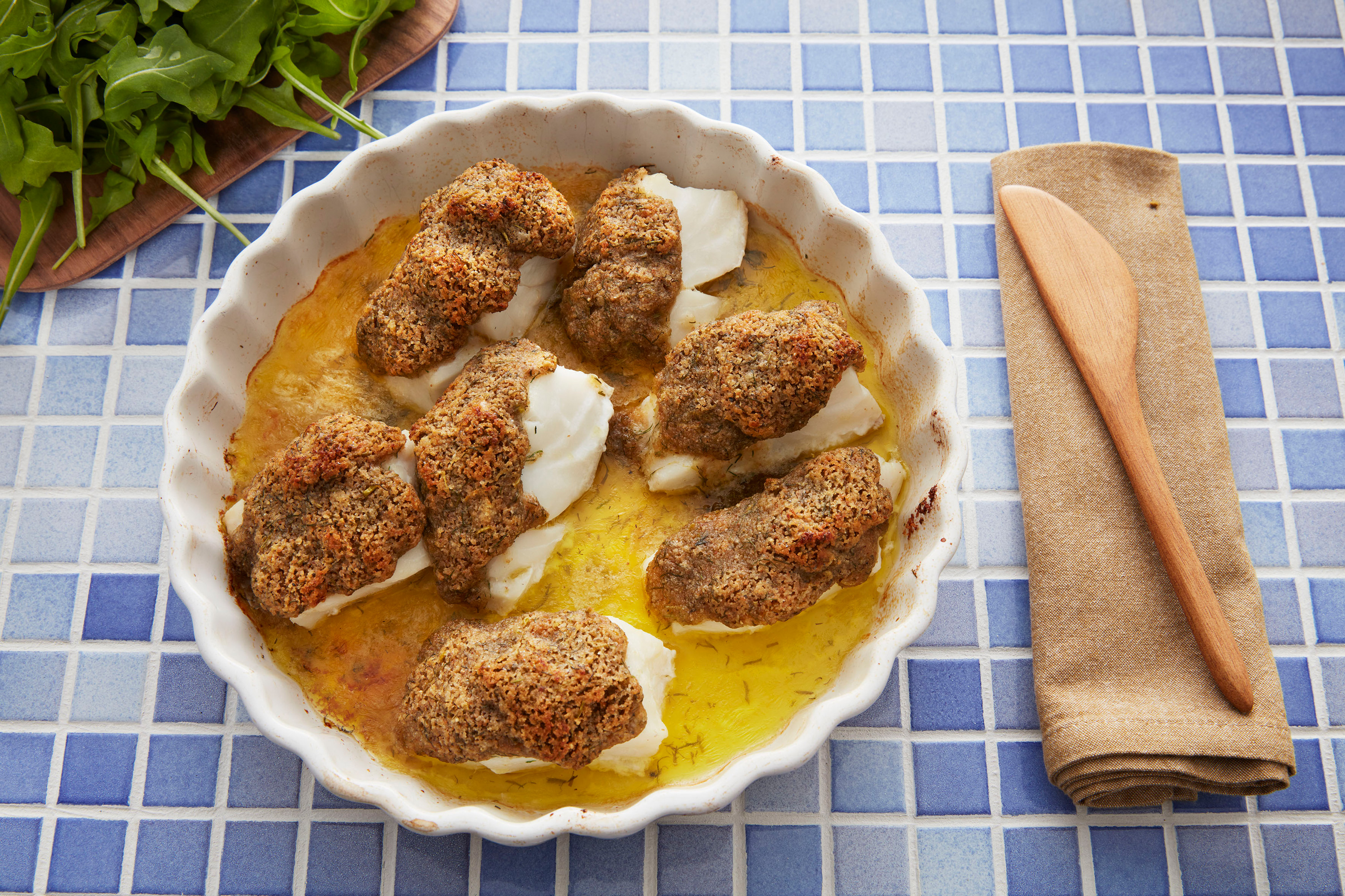 Ovnsbakt torsk med brødkrum og urter