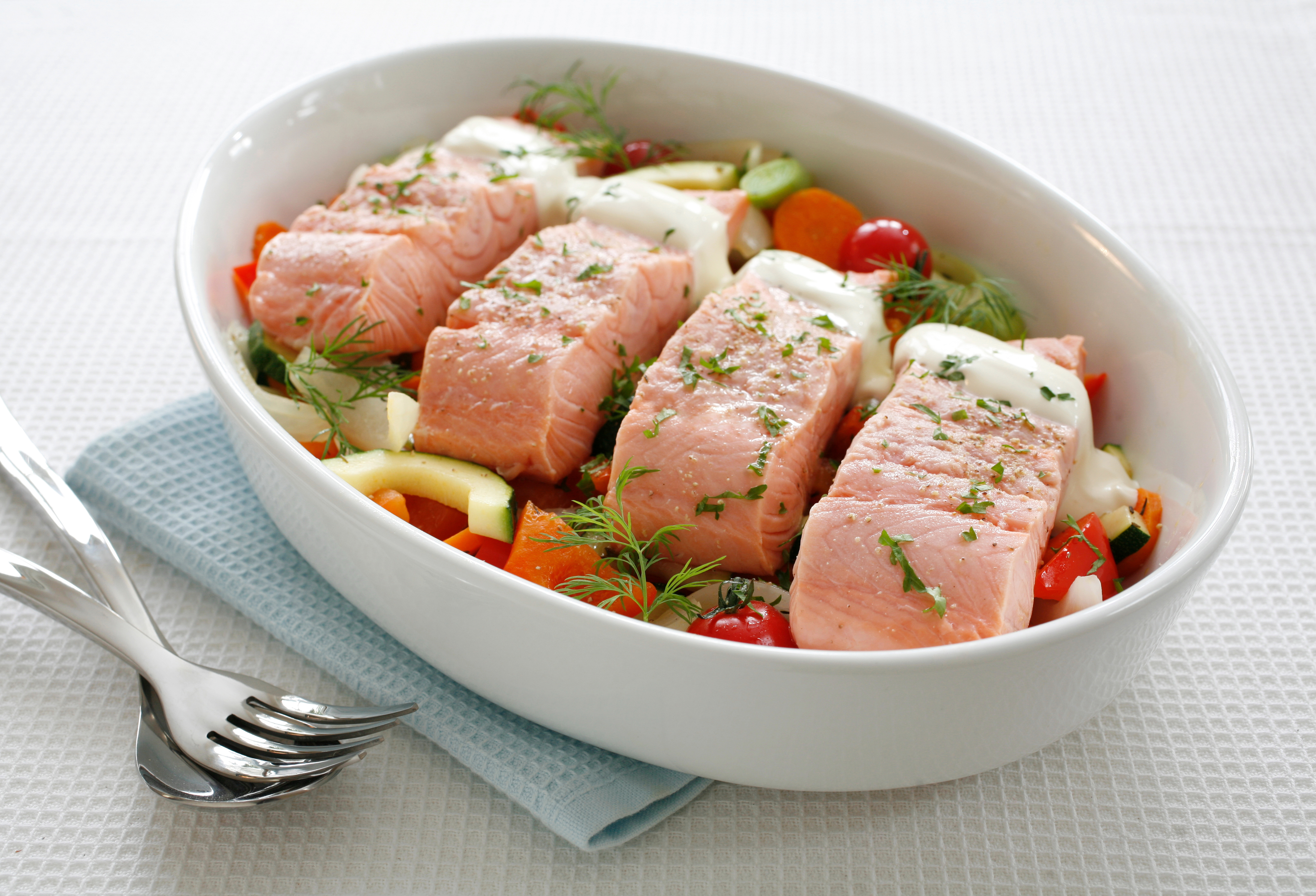 İnce, keskin bir bıçak yardımı ile derilerinden dikkatlice ayrılan somon filetolar küp parçalar şeklinde kesilerek domateslerle birlikte güvece eklenir. Güvecin üzerine suda seyreltilerek hazırlanan domates ve biber salçalı bir su bardağı (yaklaşık 200 ml) karışım eklenerek suyun kalanı ilave edilir. Tuz ve karabiber serpilir.